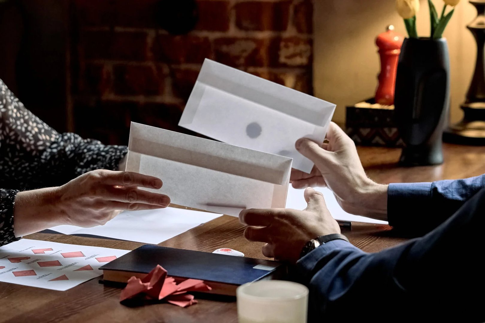 Зрители становятся активными участниками друг для друга. Действие разворачивается в пределах одного столика в уютном кафе. У каждого в паре своя роль. Голос в наушниках подсказывает, что и в какой момент сделать, чтобы сюжет заиграл.