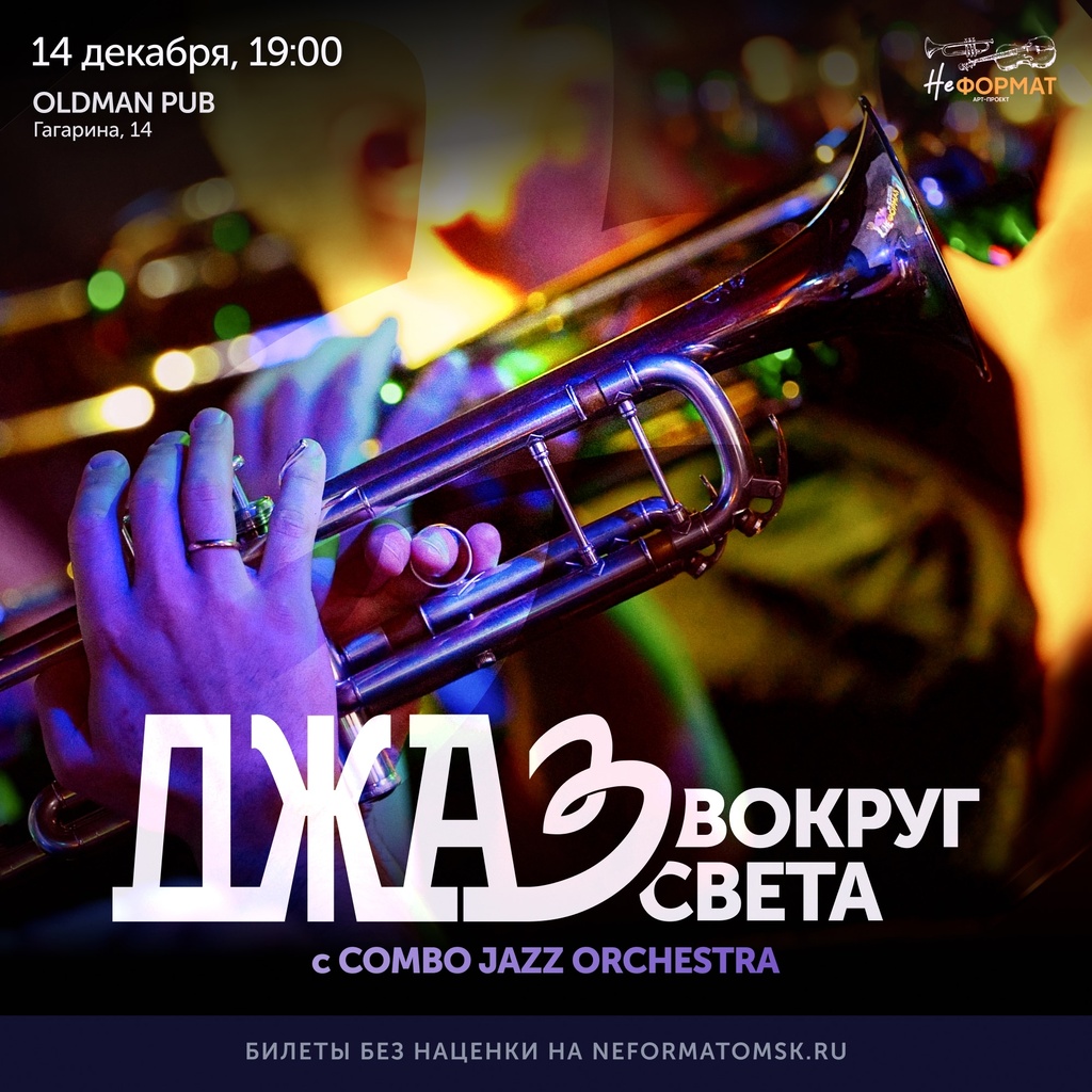 Приглашаем в джазовое путешествие вокруг света за один вечер! 14 декабря на сцене Oldman Pub выступит эстрадно-джазовый оркестр Combo Jazz Orchestra с новой программой «Джаз вокруг света». Ребята собрали для вас самые зажигательные мотивы со всей планеты: энергичные ритмы Кубы, Мексики и Гавайев, мелодии Италии и широкая душа России. Джаз — это настоящий музыкальный язык, который понимают на всех континентах! В программе прозвучат знакомые каждому хиты, такие как: Africa, Cuban Pete, Yakety Sax и многие другие.