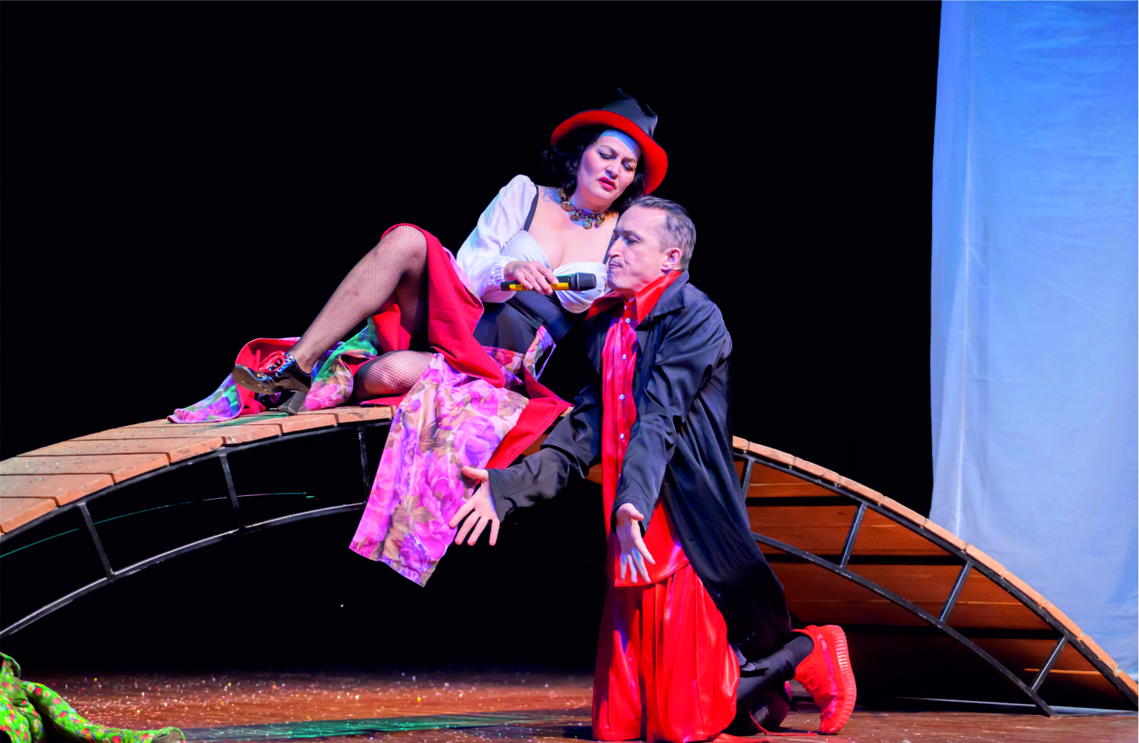 Вроде бы о любви… Хотя Черт его знает. Режиссер – Романов В.А. Почему - вроде бы? Кузнец Вакула ради своей любви - Оксаны - готов сделать невозможное, и, собственно, делает это! Любовь торжествует! Лирика, конечно, присутствует у Николая Васильевича, и невозможно оторваться от описаний ночи, степи, дороги, Днепра… Однако Гоголь не только лиричен, его проза наполнена тонким юмором, доброй улыбкой. Он может быть сатирически острым и беспощадным, ироничным до сарказма! Место действия в спектакле - хутор, населённый простыми, обычными людьми, которых в этот вечер объединяет главное - предстоящий праздник Рождество. Каждый из них хочет провести этот вечер по-особенному, т.е. весело, бесшабашно, на полную катушку! Отсюда в предпраздничной атмосфере царит дух веселья, мелких интриг и незатейливых авантюр. Известные персонажи решаются на весьма сомнительные поступки ради кратковременного счастья! Ну, и как тут не появиться нечистой силе в лице Чёрта, у которого только эта ночь и осталась, чтобы сбить людей с пути праведного и помешать двум влюблённым: Вакуле и Оксане…