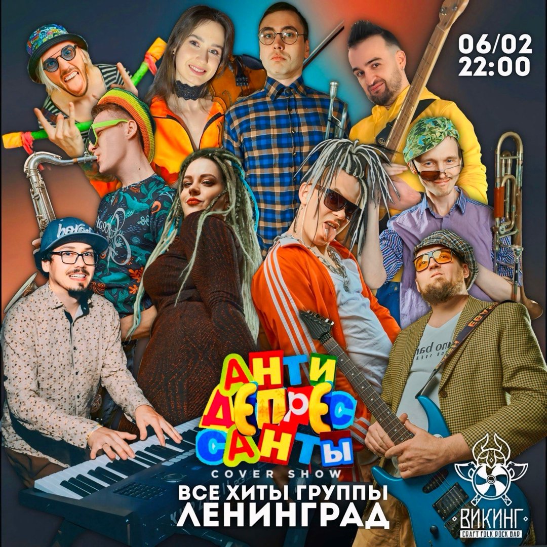 Если любите песни группы Ленинград⁉ Тогда вам сто процентов нужно посетить данный концерт. Двухчасовое яркое, музыкальное шоу с любимыми хитами группы "Ленинград" в исполнении кавер-шоу проекта "Антидепрессанты".